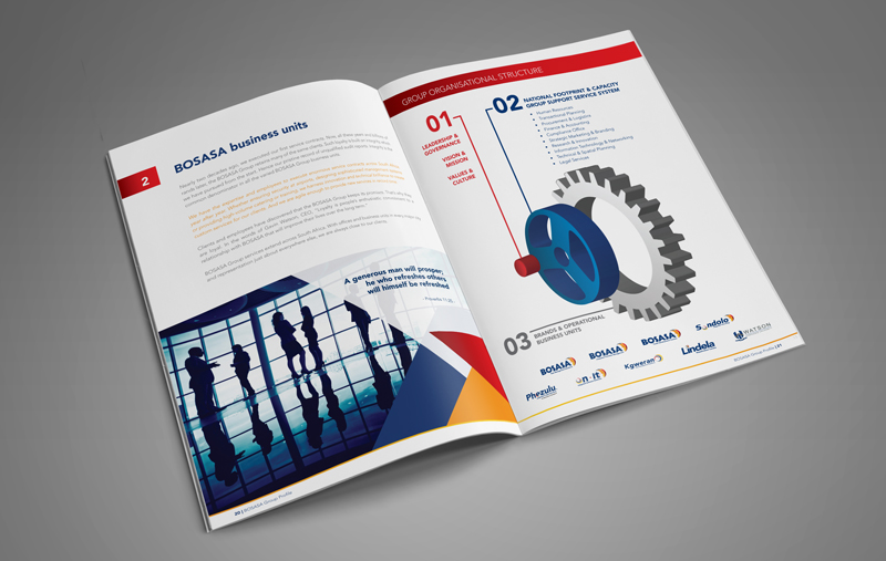 BOSASA wanted to revamp its corporate profile which was very content heavy and difficult to read. I gave the profile a clean look and feel with crisp design elements to tie in with the website look and feel.